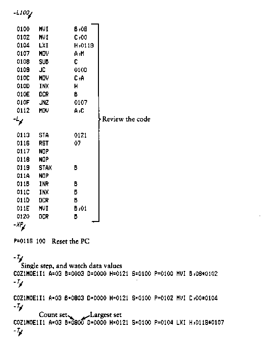 where the I and R commands set up and read the specified program to test. See the explanation of the I and R commands below for exact details.