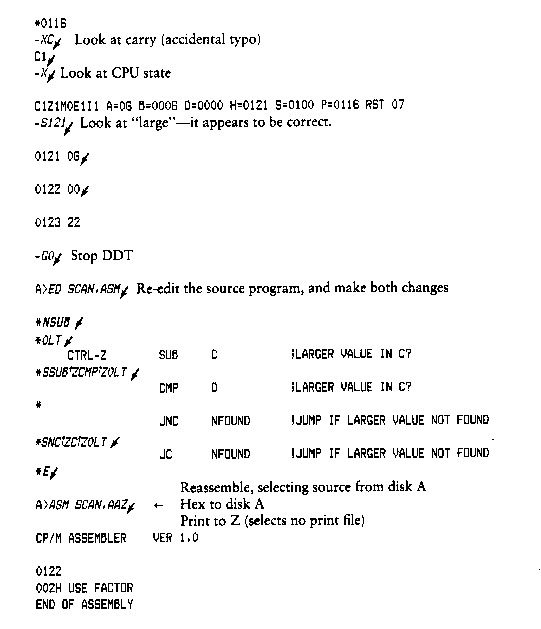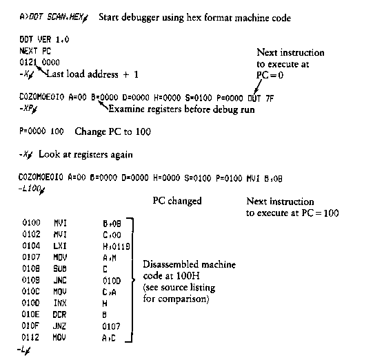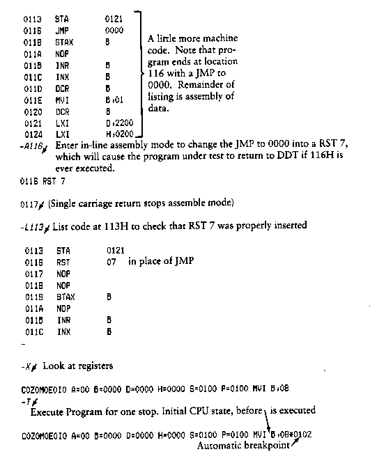 Note that the assembler/disassembler portion of DDT can be overlaid by the transient program being tested, in which case the DDT program responds with an error condition when the A and L commands are used.