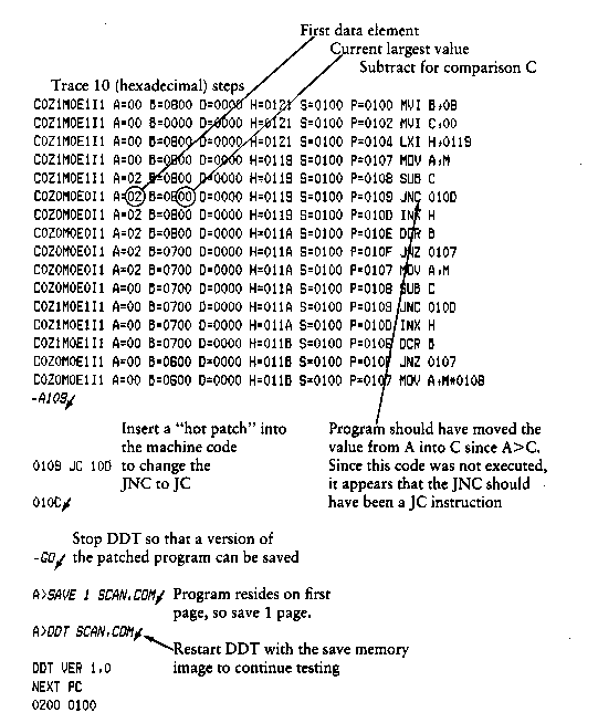 At any point in the debug run, you can stop execution of DDT by using either a CTRL-C or G0 (jump to location 0000H) and save the current memory image by using a SAVE command of the form: