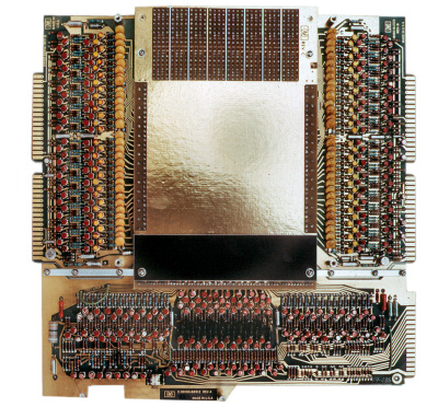Chuck Near’s prototype 64-bit ROM was woefully undersized for the job, so Osborne began to scale it up. Integrated-circuit technology of the day was hopelessly crude so Near had elected to use a different technology based on photolithography—multilayer printed circuitry (pc boards)—which was much farther down the manufacturing learning curve. Even so, pc-board manufacturing was just barely able to do the job in 1965. HP’s pc-board shop could not build the ROM to Osborne’s specifications at first. Osborne needed lithographic features about one third the size of HP’s best circuit-board imaging capabilities to date. Gradually, the pc-board shop learned how to pattern the ROM’s memory array.