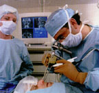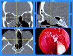 InstaTrak uses CT scans acquired before the operation to provide the three-dimensional "road map." Patients wear a special head-set while the CT scans are taken and during the operation, so that the image data can be aligned precisely with the patientıs orientation. Before the operation, sensors are attached to the surgical instrument so that its location is tracked precisely. Endoscopic video data is also integrated in the computer system so that the surgeon can see all of the important data on screen at once.