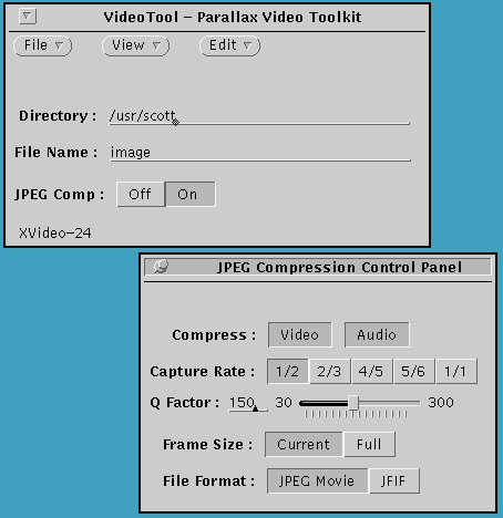 - Video images can be saved in Sun Raster File, Parallax JPEG, or JFIF