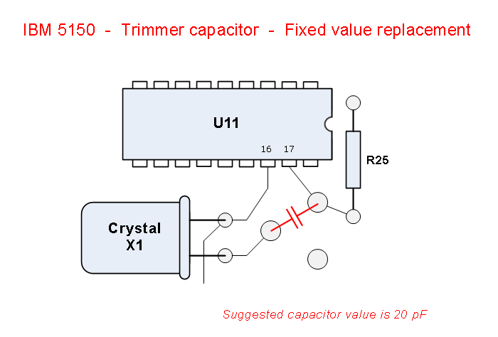 The fact that the capacitor is adjustable (rather than fixed) is for possible adjustment when a composite monitor (or TV) is the display, attached to the composite video out of the CGA card (the card's RCA jack) - adjusting the trimmer fine tunes the colours that appear.