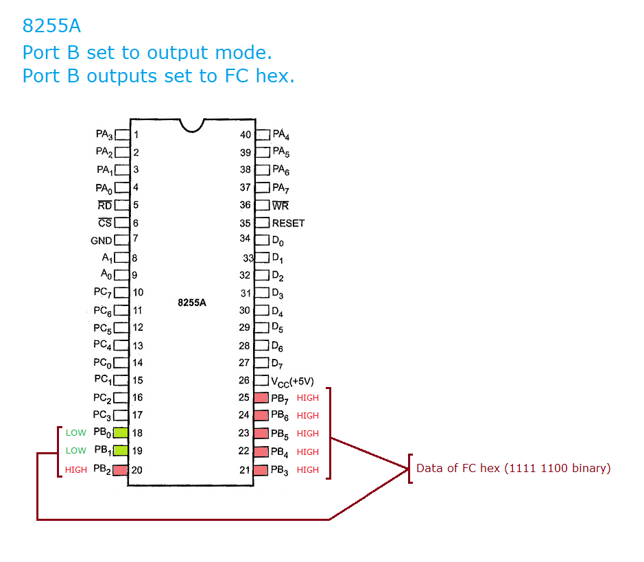 | Note 11 | At power on (and after RESET released), the 8255 defaults to mode 0 operation for both groups, with all 3 ports (A, B and C) being inputs. So, even though the command sent to the 8255 is [Group_A_mode=0, Group_B_mode=0, Port_A=inputs, Port_B=outputs, Port_C_upper=inputs, Port_C_lower=inputs], the only result is that the port B lines change from inputs to outputs. |