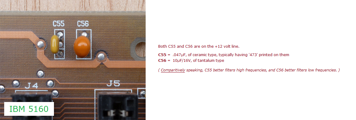 On a 5160 motherboard (of both types), there are two components on the +12 volt line and two components on the -12 volt line.