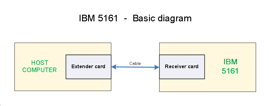 Memory (ROM/RAM) operations are slowed by the extender card and receiver card and cable. Because of that, IBM require that a wait state be invoked for operations involving any memory in the 5161. This is controlled by switches on the extender card. |