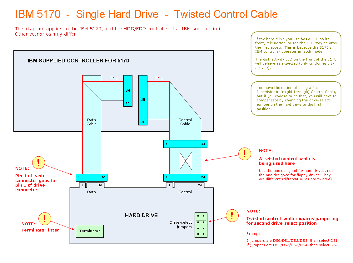 Note that in the cable set that IBM supplied in the 5170, the hard drive's control cable is twisted. Photo at here.