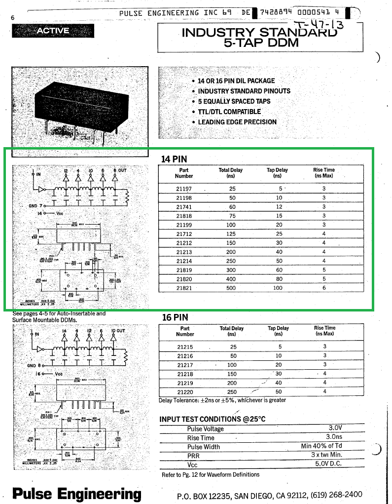 | Error | The pin numbering of the delay line is wrong. Left to right, it should be 12,4,10,6,8 per the 14-pin diagram at here. |