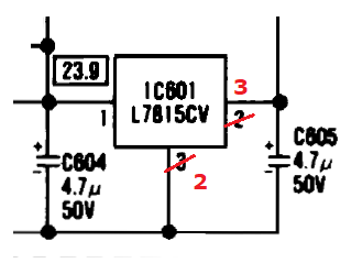 | Error | In the diagrams, pins 2 and 3 on IC601 are around the wrong way. Click here to see my correction (in red). |