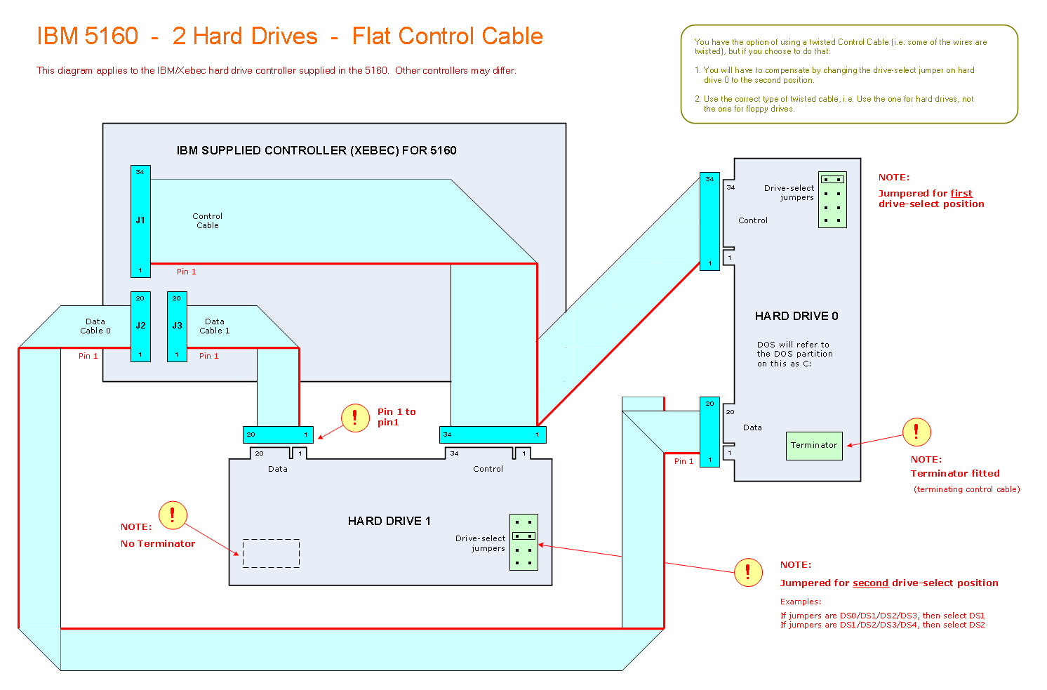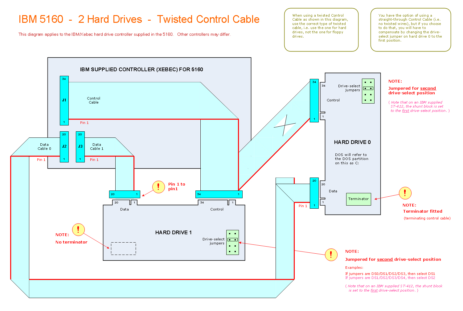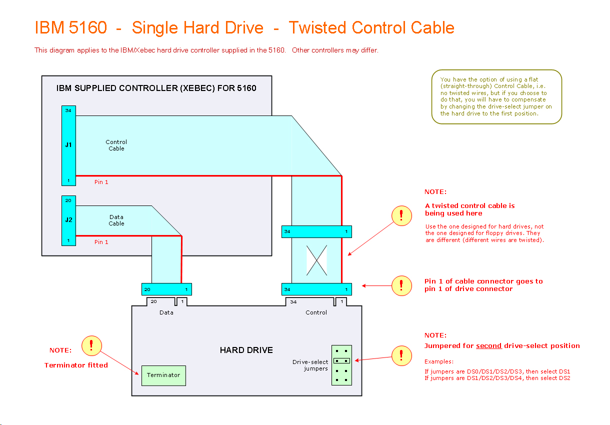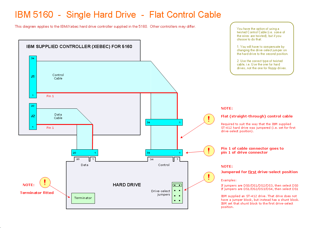 Click here to see a cabling diagram for a dual-drive dual-drive configuration. It is recommended that you first get drive 0 working, then add drive 1 later.