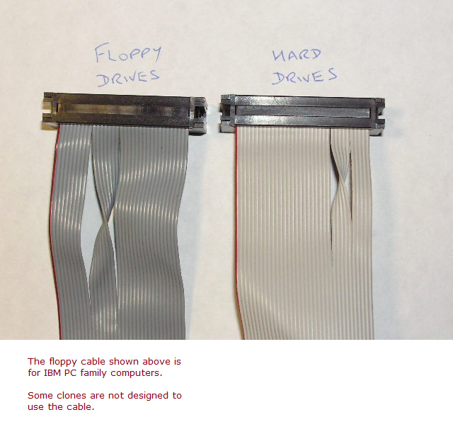 Click here to see the difference between a floppy twisted cable and hard drive twisted cable.