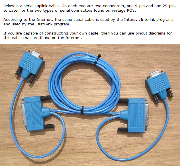 A problem sometimes seen, is DOS versions of Laplink requiring the use of computers running at a similar speed/performance. For example, if I connect my 6 MHz IBM 5170 up to my 486DX-66 clone (via serial or parallel Laplink cable) and start transferring files, I find that after about a minute, Laplink goes into perpetual 'timeout' (continually displays 'timeout'). If I then switch the 486DX-66 out of turbo (goes to 8 MHz), then restart Laplink at both ends, all goes well.