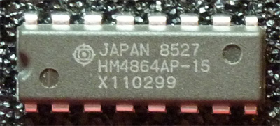 | Sharp | LH2164-15 | 150 ns | ? | ? | ? | photo | Found on a working card mixed with µPD4164C-3 | ||||
