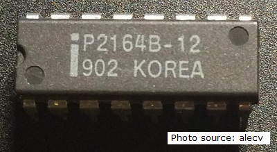 | IBM | 2164-20 | 200 ns | NMOS | ? | ? | photo | Seen fitted on an IBM 5160 motherboard. | ||||
