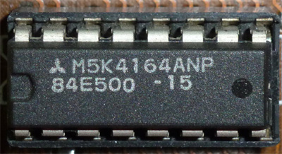 | Mitsubishi | M5K4164ANP-20 | 150 ns | NMOS | N.C. | 128cycle/2ms | photo | datasheet | As shown in photo, the prefix of "M" is not printed on the chip. | |||