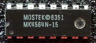 | Mostek | MK4564N-15 | 150 ns | NMOS | N.C. | 128cycle/2ms | photo | 4164 list 1 | 4164 list 2 | datasheet | Plastic case. | |