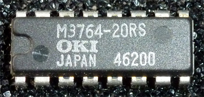 | Oki | MSM3764A-15 | 150 ns | NMOS | N.C. | 128cycle/2ms | photo | 4164 list 1 | datasheet | As shown in photo, the prefix of "MS" is not printed on the chip. | ||