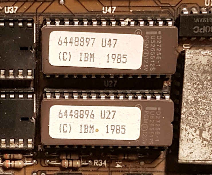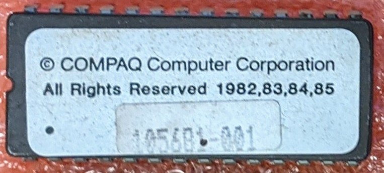 "BIOS 401402-00 A © 1985" on 17A ROM sticker. "401401-00 C © 1985" on 7C ROM sticker. |