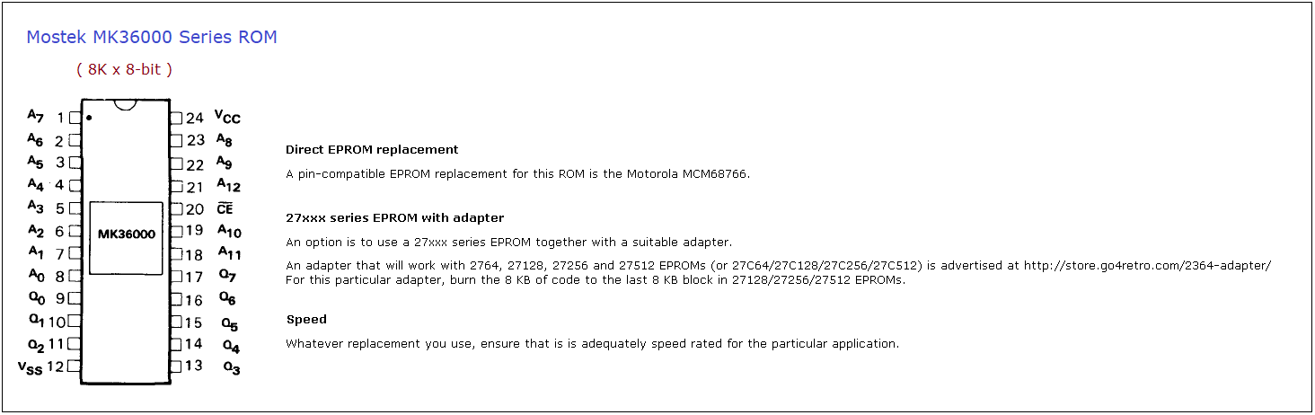 A3: ROM type is 2316E (as printed on the PCB). I successfully used a NEC D2716D EPROM. A49: See note 7 above |