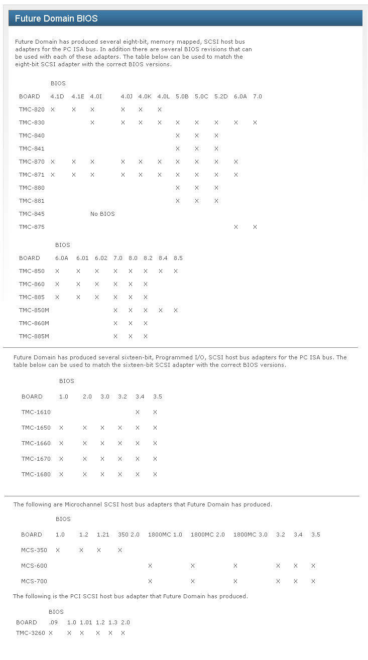 | Note 9 | TMC-830: According to here, the version 7.0 BIOS from the TMC-850M will work. |