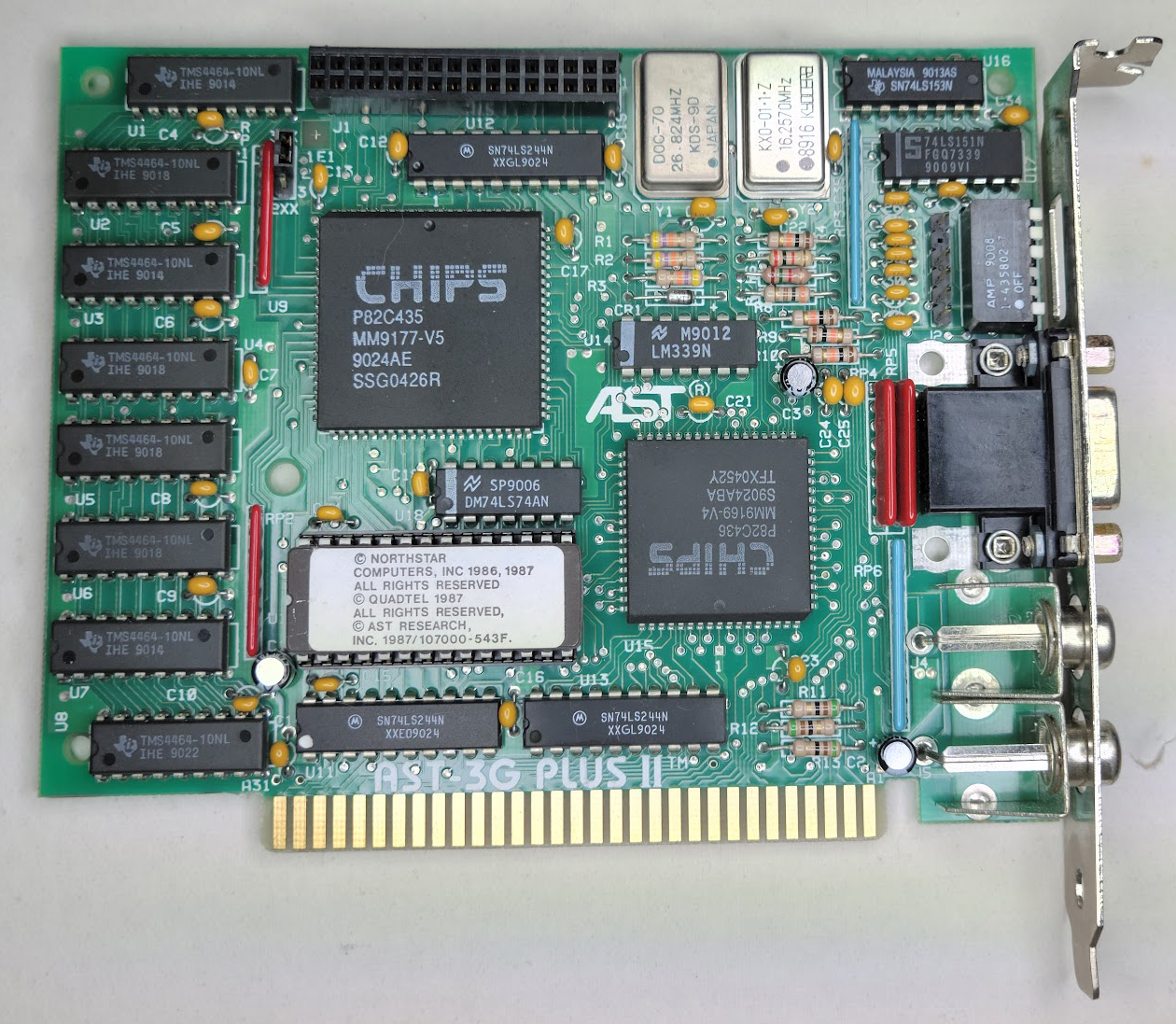 | AST | AST-3G Plus II | 8-bit EGA card | '88 | ? | ? | BIOS | 12B700 | D27128A | 16 KB | D | GloriousCow | Download | Contains string "05/14/88-11:35:26" |