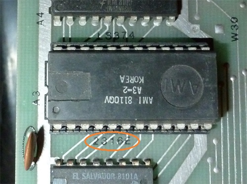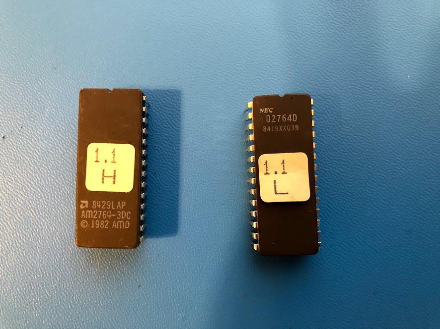 Low byte. Under EPROM, PCB has "27128" on it. High byte. Under EPROM, PCB has "27128" on it. |
