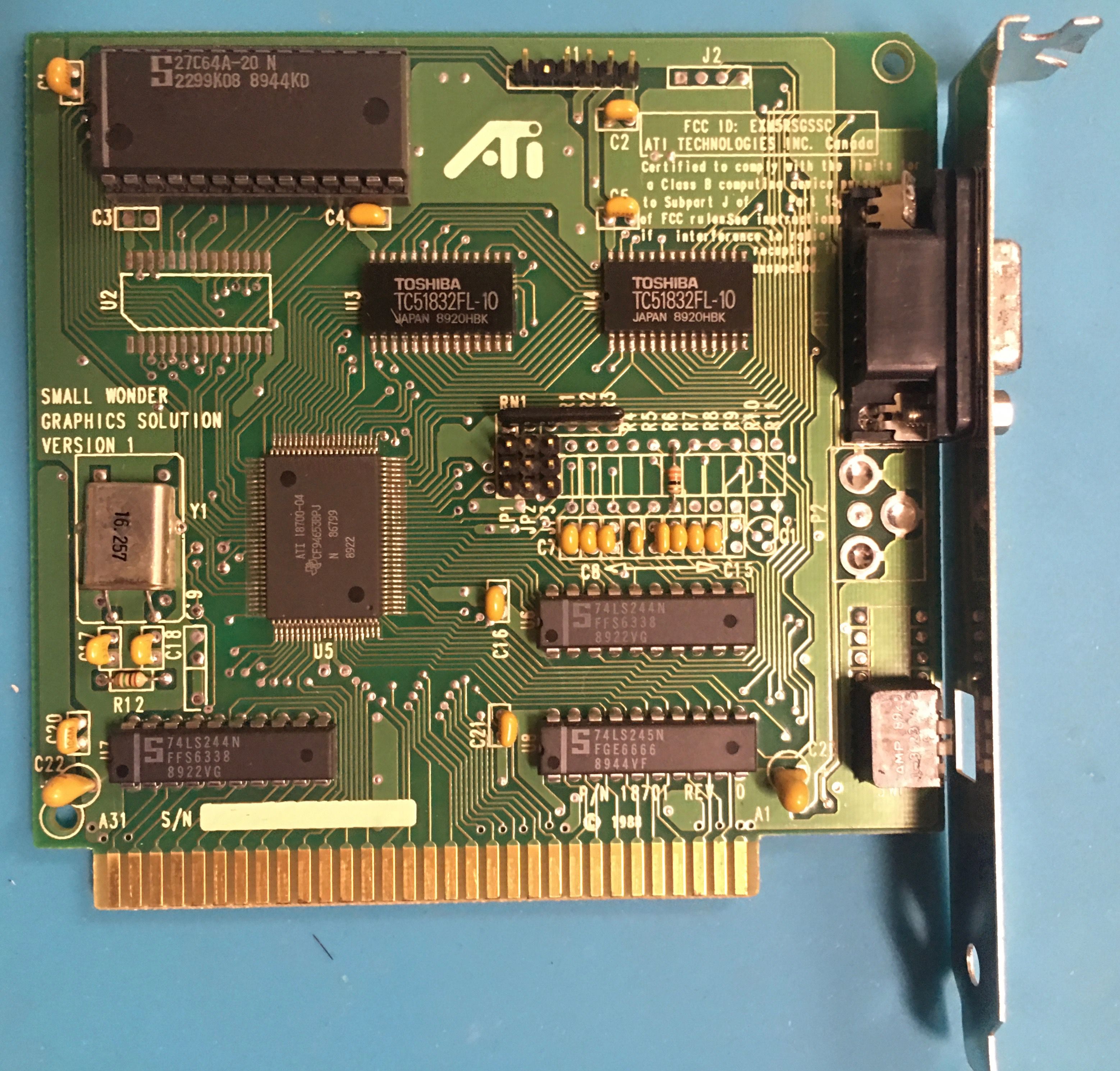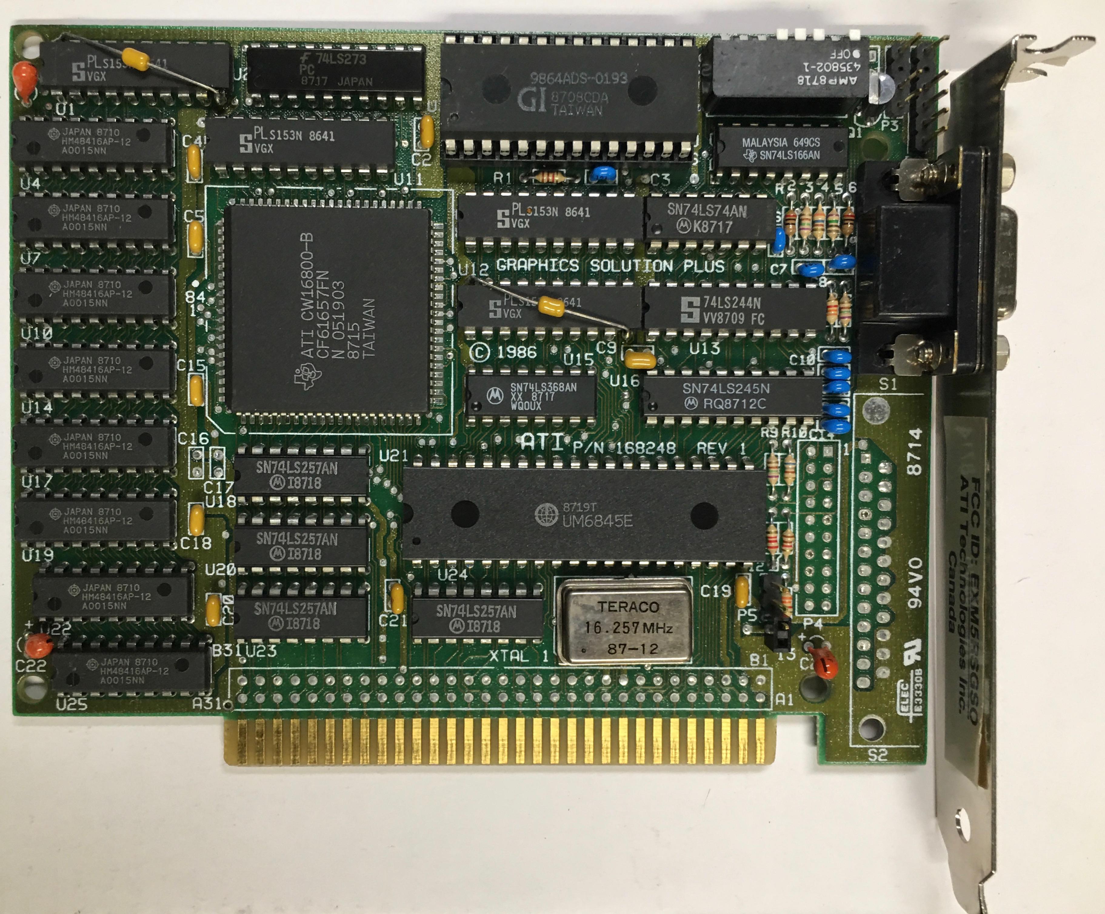 | ATI | VGA Wonder XL | 16-bit VGA card | '91 | 11201122020 | U16 U17 |