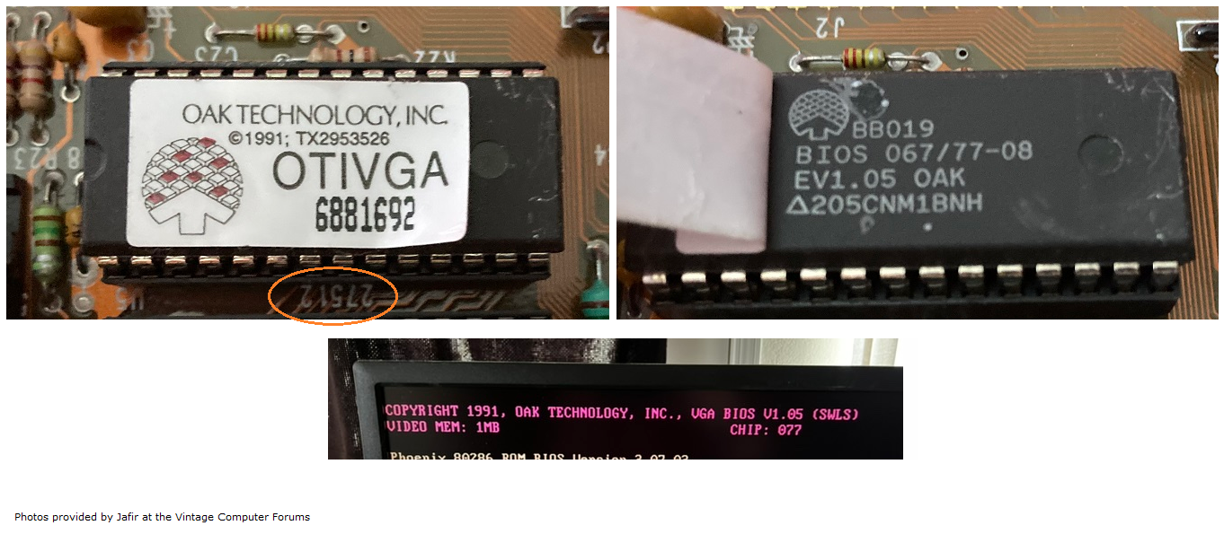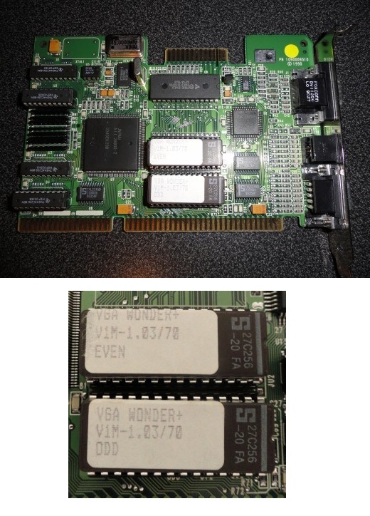 "VGA WONDER+ V1M-1.03/70 EVEN" on U11 ROM sticker "VGA WONDER+ V1M-1.03/70 ODD" on U12 ROM sticker |