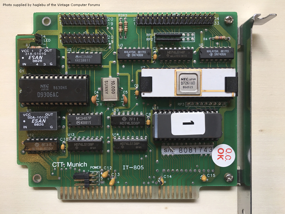 | ??? | FA-100 | 8-bit floppy controller | '88 | 1.0 | U5 | BIOS | 0D7200 | M2764A | 8 KB | D | Robin4 | Download | Contains strings "FAX-100" and "Bios Ver. 1.0 (June/15/1988)". "FA-100" on ROM sticker. |