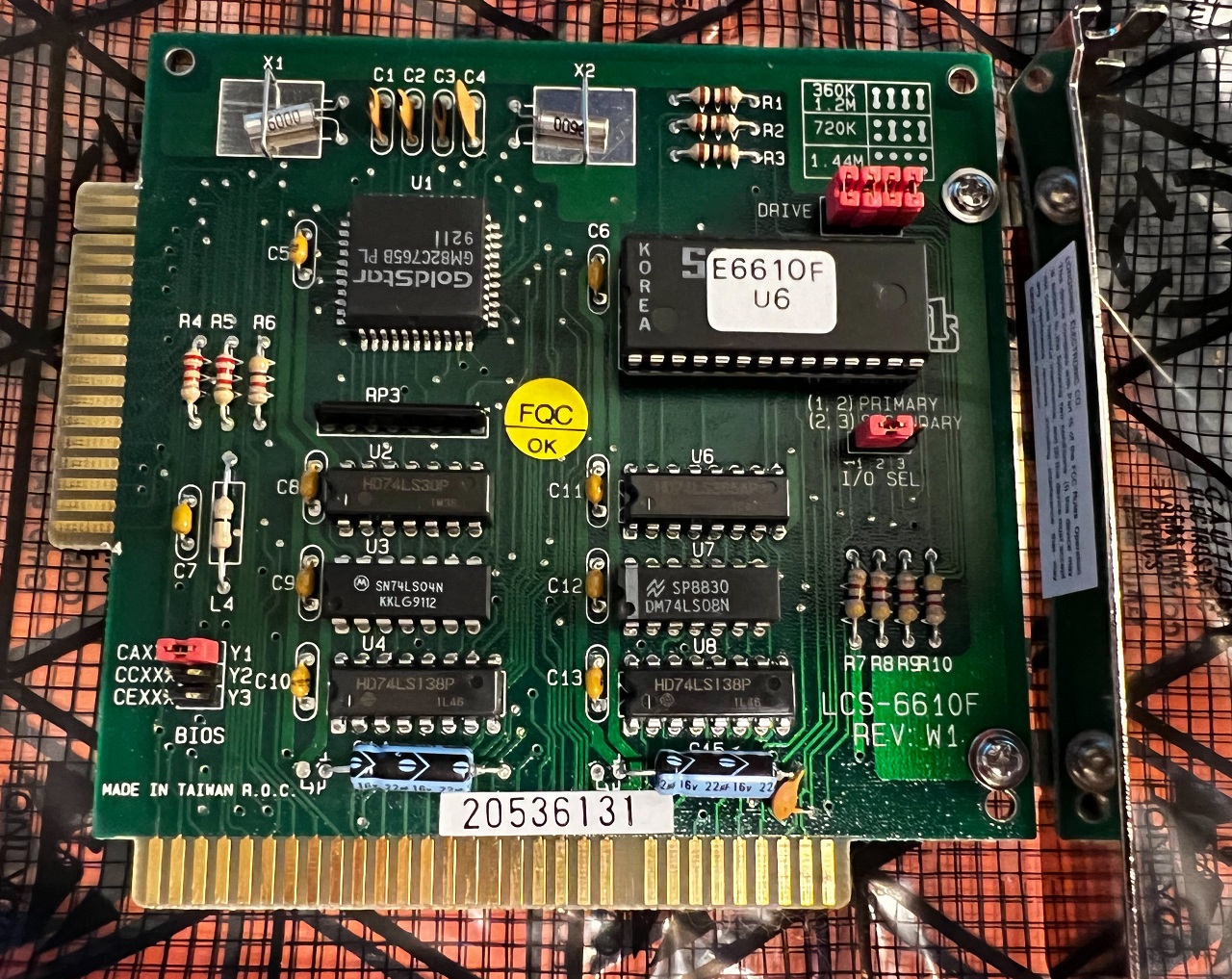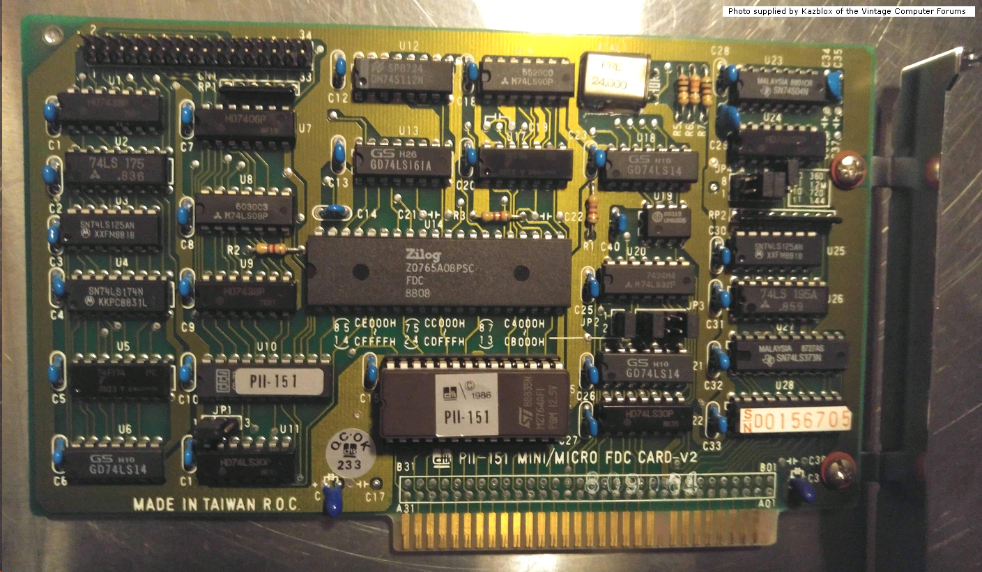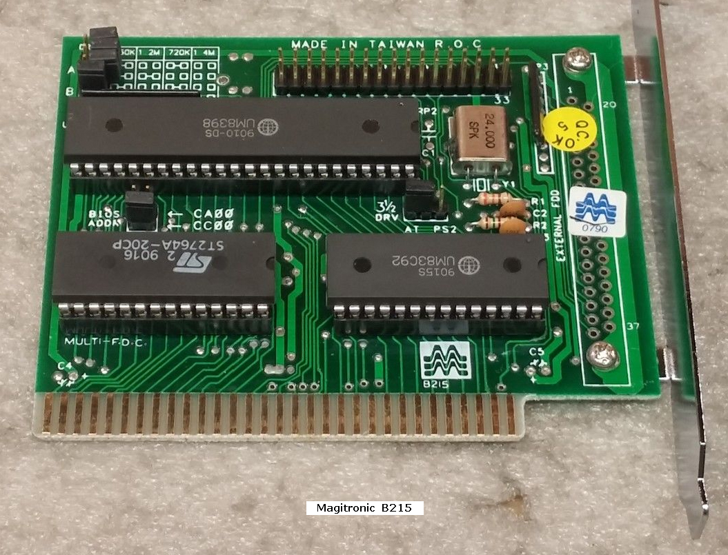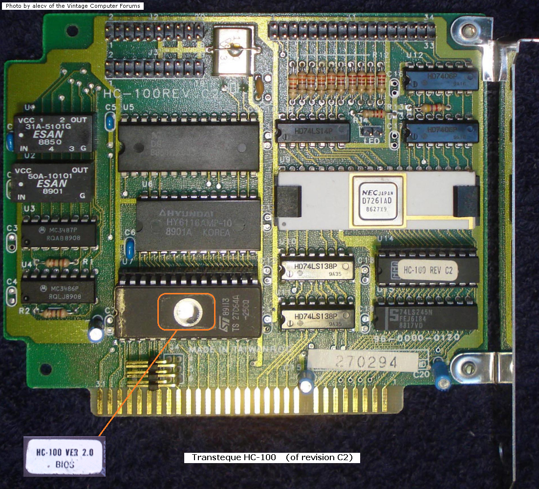 | ??? | ??? | 8-bit floppy controller | '86 | 1.60 | U7 | BIOS | 1BE500 | ? | 8 KB | ? | romanon | Download | Contains "HFDC card Ver 1.60 (C) HSIN-LIN COMPUTER CO., LT". Main chip is a UM8272A. |