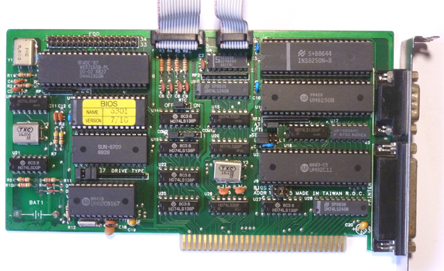 | VTech | XT Multi I/O | 8-bit multifunction card | '89 | 1.05 | U14 | BIOS | 047700 | S27C64A-20 | 8 KB | D | Robin4 | Download | Contains "XT MULTI I/O CARD WITH 1.44M FDD" and "VERSION 1.05" |
