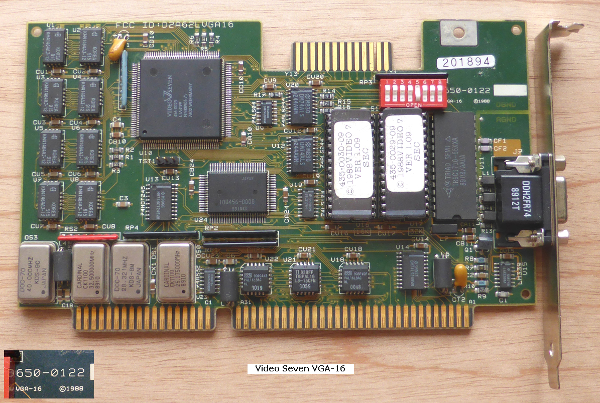 | Video Seven | VGA-16 | 16-bit VGA card | '88 | 1.09 | U16 U17 |