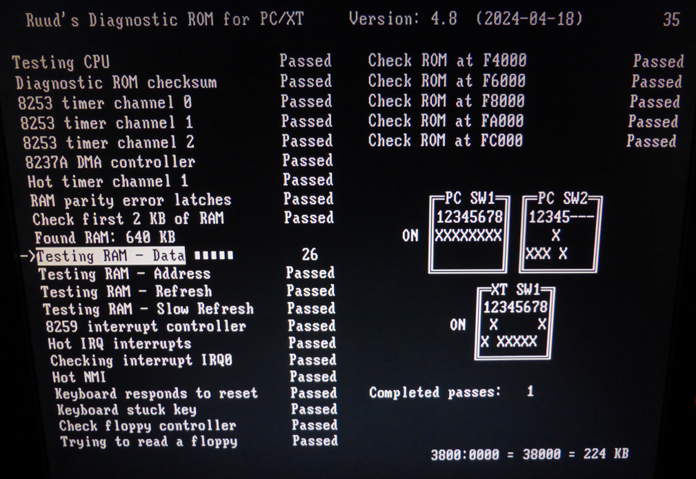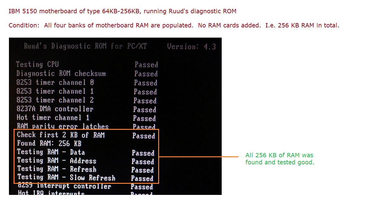 | Only bank 0 is populated, and all chips in it are good | See the partial screen shot at here. | 1 bank of 64 KB = 64 KB |