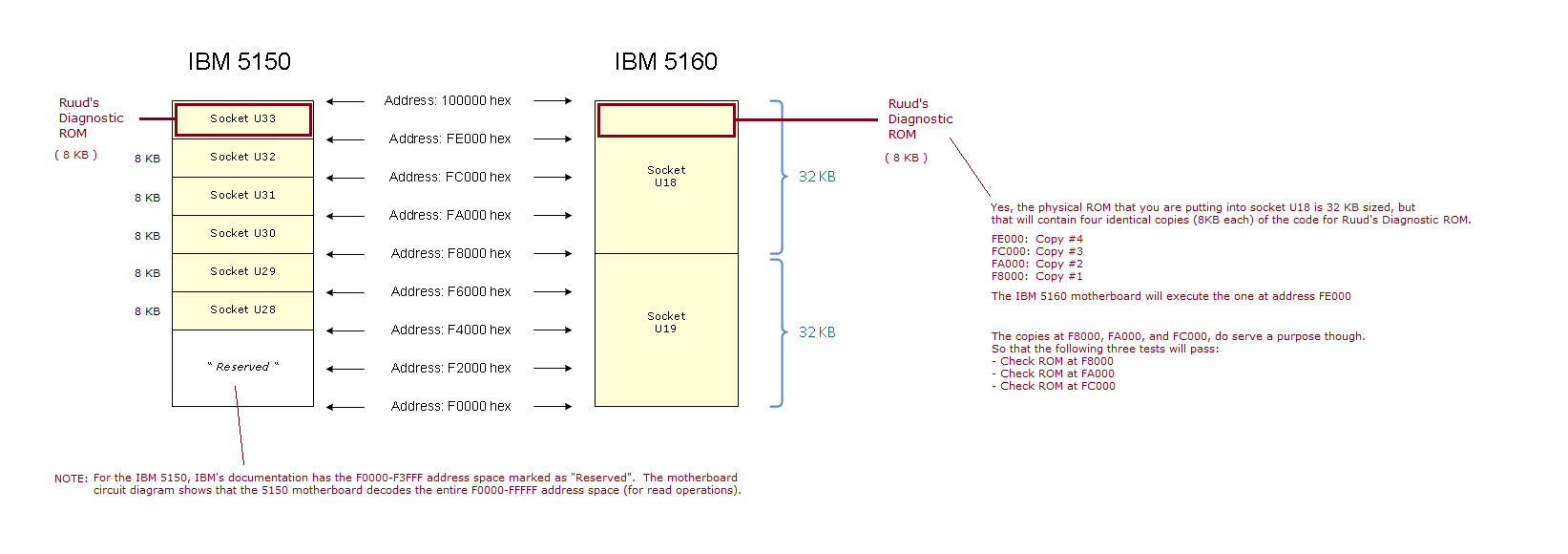 | Note 2 | Ruud's Diagnostic ROM for the PC and XT is actually only 8 KB in size. To create a 16 KB sized image, the 8 KB image was simply doubled. To create a 32 KB sized image, the 8 KB image was simply quadrupled. A related diagram is at here. |