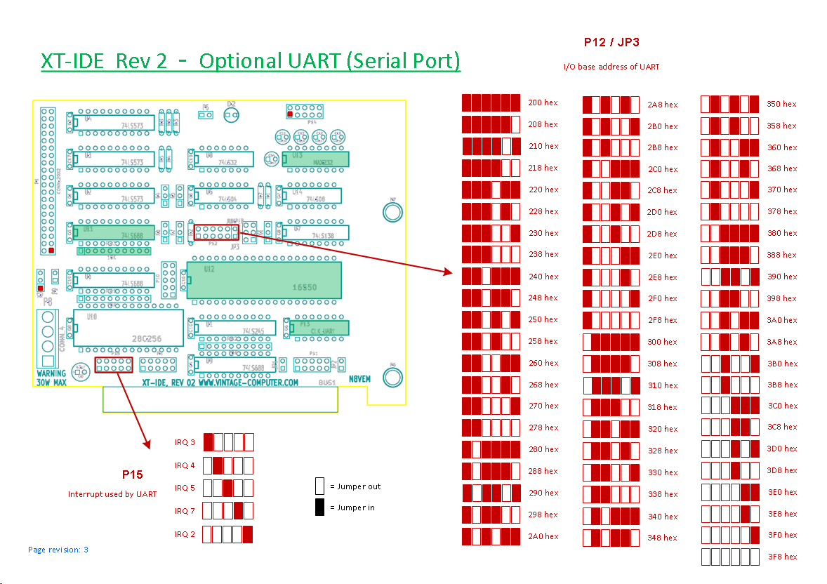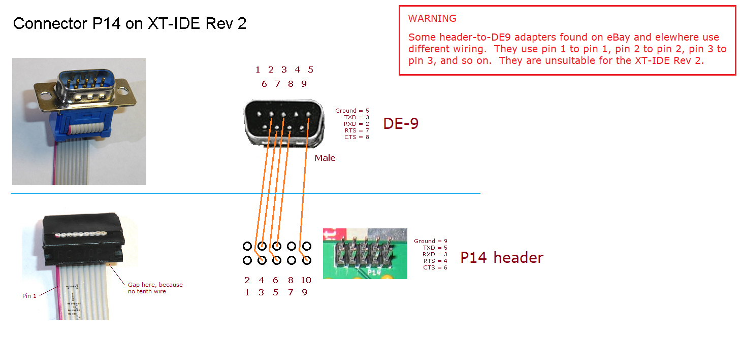 | 1. | The first exception is that the port operates 4 times faster than normal. For example, if you ran some terminal emulation software, then within that software, set the port speed to 1200 baud, the port would actually operate at 4800 baud. BTW: The 4 x speed comes about because the XT-IDE rev 2 card uses a 7.3728 MHz crystal, rather than a standard 1.8432 one. | |