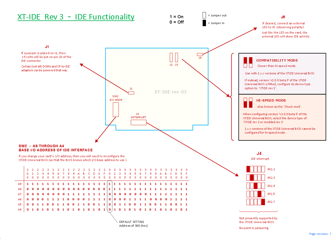 • Just like with the XT-IDE Rev 2 card, it is expected (only for performance reasons) that the Rev 3 card be jumpered for hi-speed mode, and using a 2.x.x/Rxxx version of the XTIDE Universal BIOS (per option #1 in the table below).