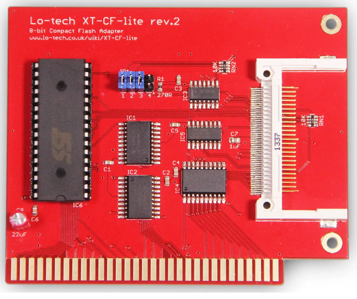 | Circa 2012 Click on photo for larger view. This card requires a CF card that works in 8-bit mode - the vast majority do, but not all - see note 1 below. Lo-tech's web page at here. Superceded by the XT-CFv2. |