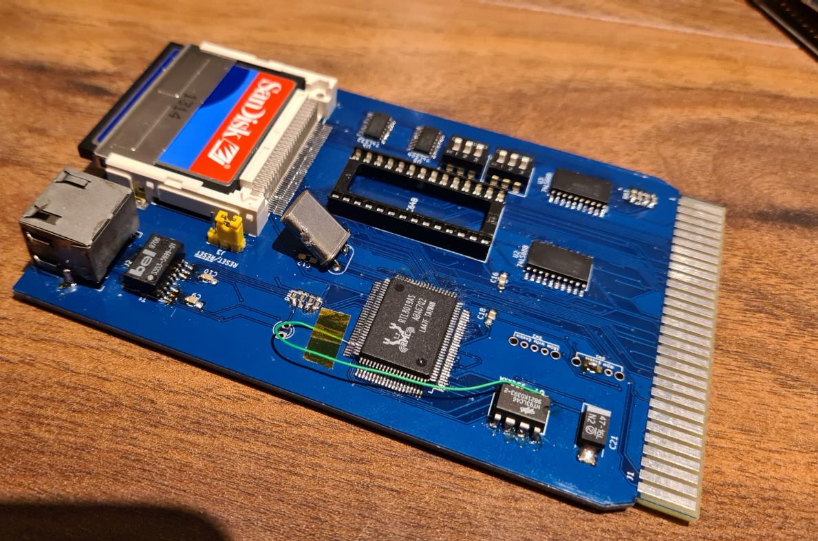 September 2021. Design information at here. Quote: "This is a Compact Flash HD and Realtek LAN card for the Tandy 1400." See also here. |