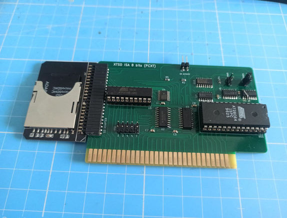 Circa 2022. Designed (based on other products) by 'spark2k06'. The designer's web page is at here. The base ROM address and base I/O port are fixed. There are defaults, that the supplier can alter at the time of ordering. Therefore, make no assumptions about cards 'seen in the wild'. The circuit diagram indicates that this particular card requires a CF card that works in 8-bit mode - the vast majority do, but not all - see note 1 below. Superceded by the XTSD ISA 8 bits. |